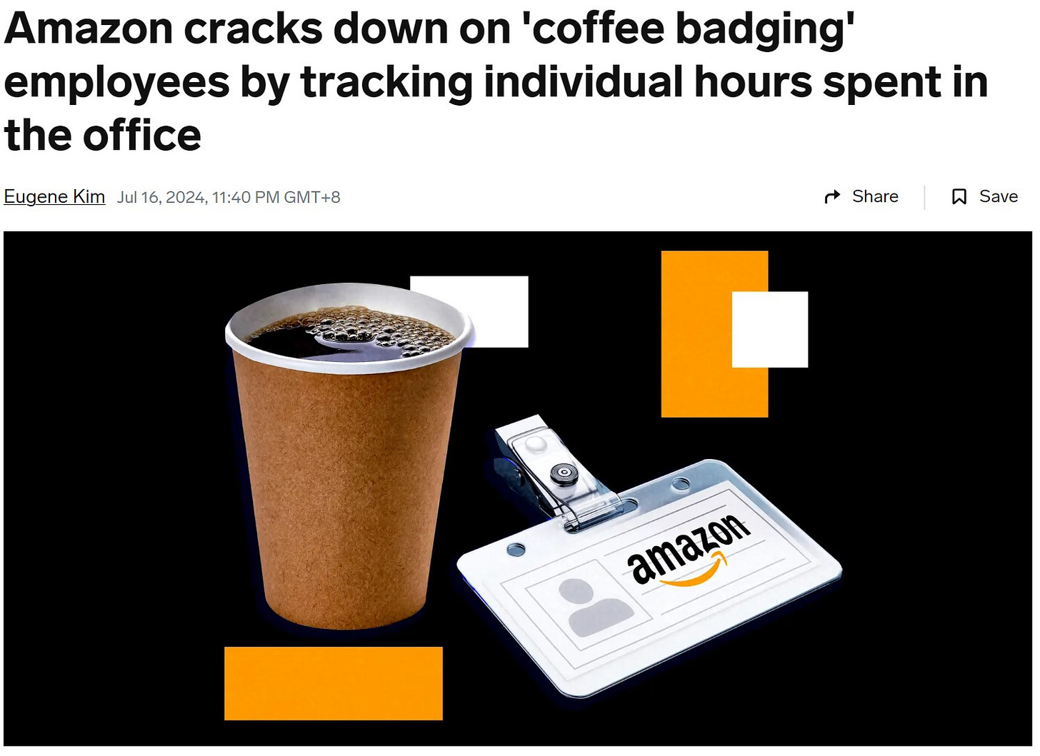 Just 2 weeks ago Business Insider reported that Amazon is going to track how long employees spend in the office, down to the hour.